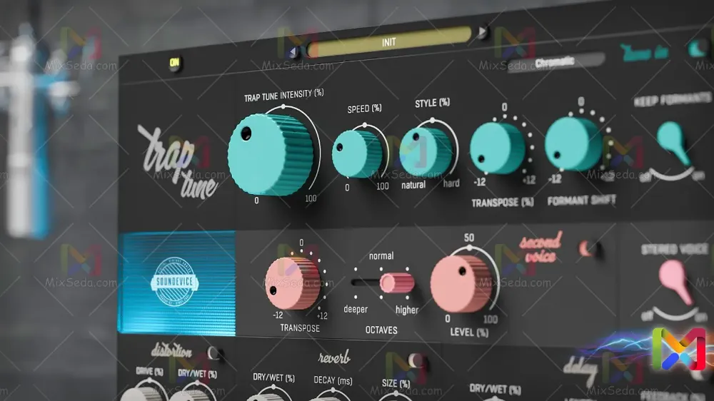بخش Second Voice اساساً صدای دیگری را اضافه می کند که هماهنگ با آهنگ در حال پردازش می خواند. یک کنترل Transpose یک تغییر در زیر و بمی 12 نیمتنی +/- فراهم میکند و به کاربران اجازه میدهد جلوههای هارمونی ایجاد کنند یا صدای دوم را یک اکتاو بالاتر یا پایینتر از صدای اصلی قرار دهند. میزان صدای دوم را می توان با یک کنترل سطح تنظیم کرد و یک سوئیچ صدای استریو افکت دوبلر TrapTune را فعال می کند و صدای استریو وسیع تری ایجاد می کند.