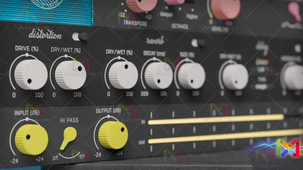 سه بخش افکت جداگانه وجود دارد و هر کدام را می توان به صورت جداگانه فعال یا دور زد. بخش Distortion دارای کنترلهای Drive و Dry / Wet است، در حالی که بخش Reverb پلاگین دارای پارامترهای Decay، Size و Dry / Wet است. در نهایت، بخش Delay مجموعهای از تاخیرهای همگامسازی شده با زمان را به همراه کنترلهای Dry/Wet و Feedback ارائه میدهد.
