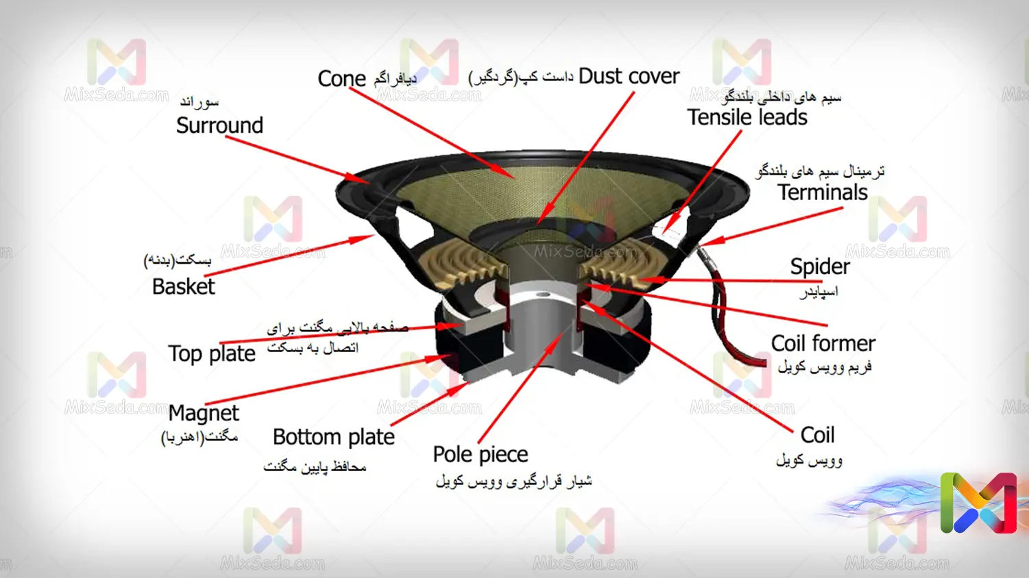 خوب بلندگو از چندین قسمت تشکیل شده. که هر کدوم از این اجزا کار خاصی رو انجام میدن و بود یا نبودشون می‌تونه حیاتی یا تا حدودی غیر حیاتی باشه.