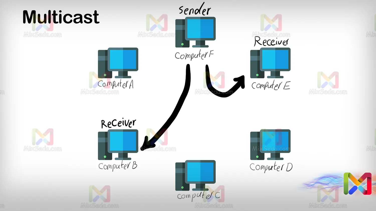 Multicast به نوع دیگری ارتباط بین کامپیوترها گفته میشود که در آن ارتباط یک کامپیوتر با چند کامپیوتر بر قرار میشود. در این نوع ارتباط، کامپیوتری که وظیفه ارسال اطلاعات را بر عهده دارد دقیقا میداند که اطلاعات را برای چه کامپیوتری ارسال کند.