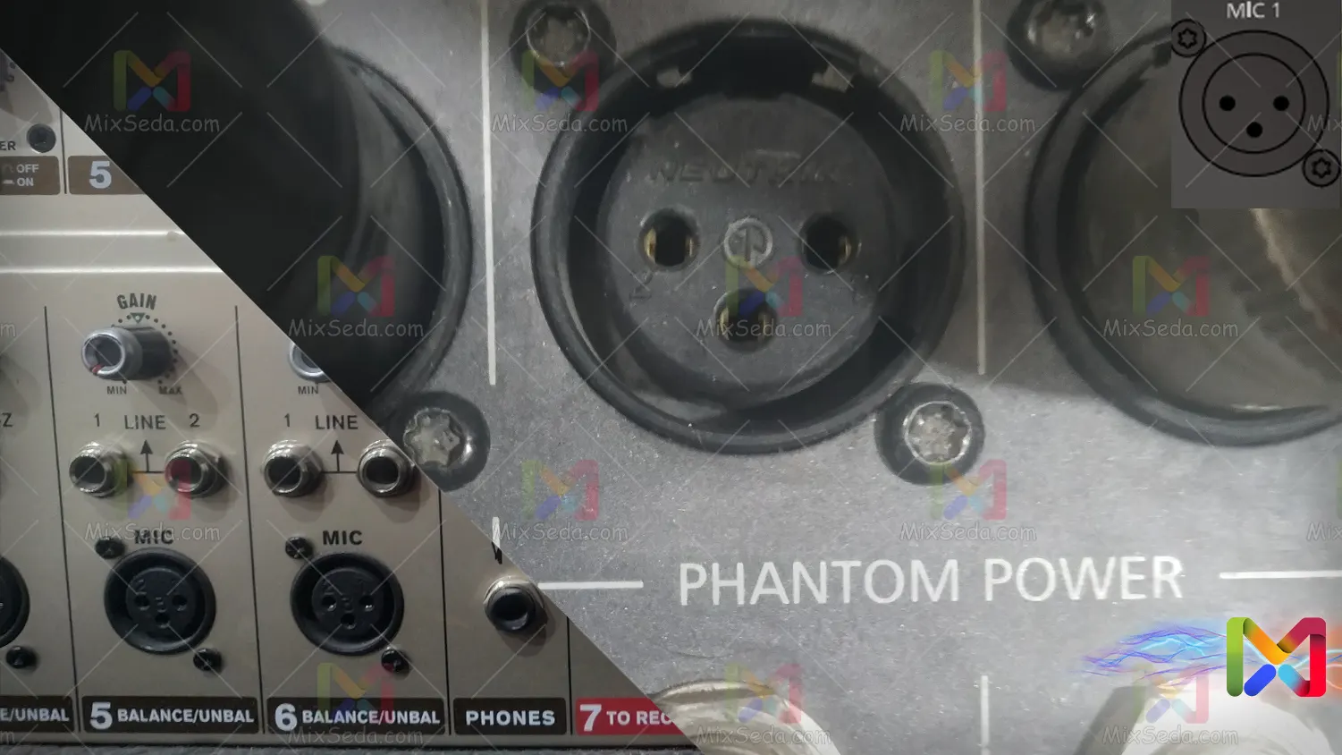 هنگامی که میکروفن های کندانسوری به میکسر ها متصل میشوند باید به این نکته توجه کنید که باید دکمه فانتوم پاور ( Phantom Power ) فعال کنید. مکان این دکمه در میکسر های مختلف متفاوت است و حتی یک سری تبدیل برای میکسر ها وجود دارد که با استفاده از یک باتری ورودی را به فانتوم پاور تبدیل میکند. در واقع شما با فعال کردن دکمه فانتوم پاور برق 48+ ولت را از طریق میکسر وارد میکروفن میکنید. من در یک مطلب جداگانه به این موضوع میپردازم. فقط در همین حد بدونید که وقتی از میکروفن ها داینامیک استفاده میکنید باید این دکمه را خاموش کنید.