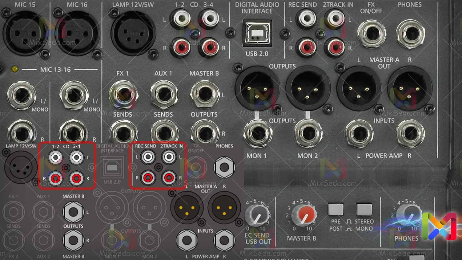 خروجی رکورد سند ( REC Send ) همانطور که از اسمش پیداست یک خروجی برای گرفتن رکورد است. این خروجی به صورت استریو ( Stereo ) برای ضبط صدا استفاده میشود.