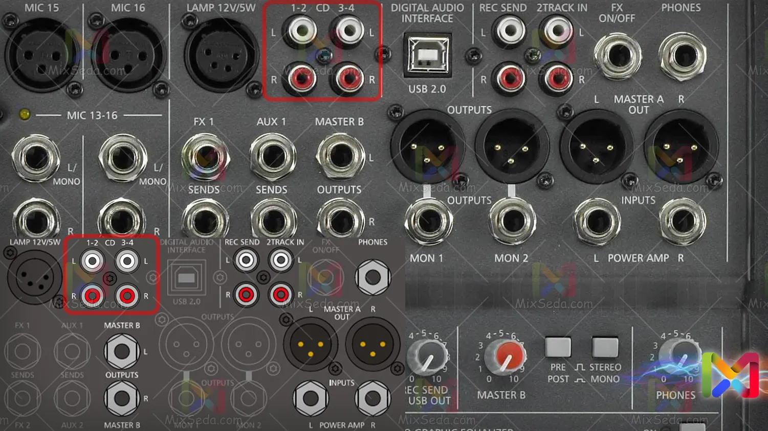 دکمه پری پست ( Pre/Post ) در کنار ولوم مستر بی ( Master B ) قرار دارد. نکته دیگه این هست که دکمه استندبای ( Standby ) روی این ورودی صدا تاثیر ندارد.