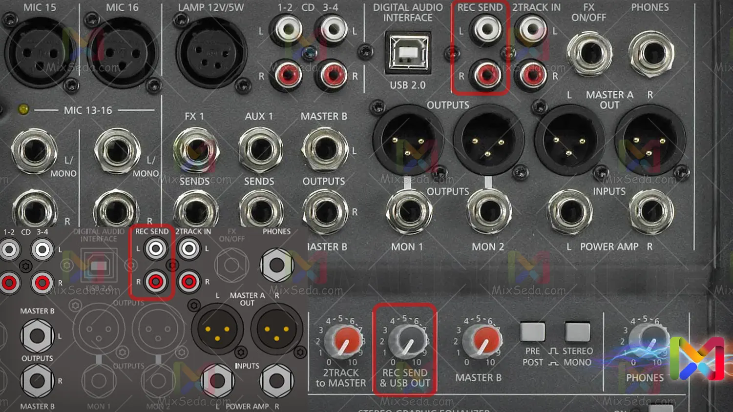 خروجی رکورد سند ( REC Send ) همان خروجی مستر ( Master ) اصلی دستگاه بدون اکولایزر گرافیکی ( equalizer graphics ) است. این بدین معناست که صدا همراه با افکت صوتی ( Fx ) رکورد میشود.