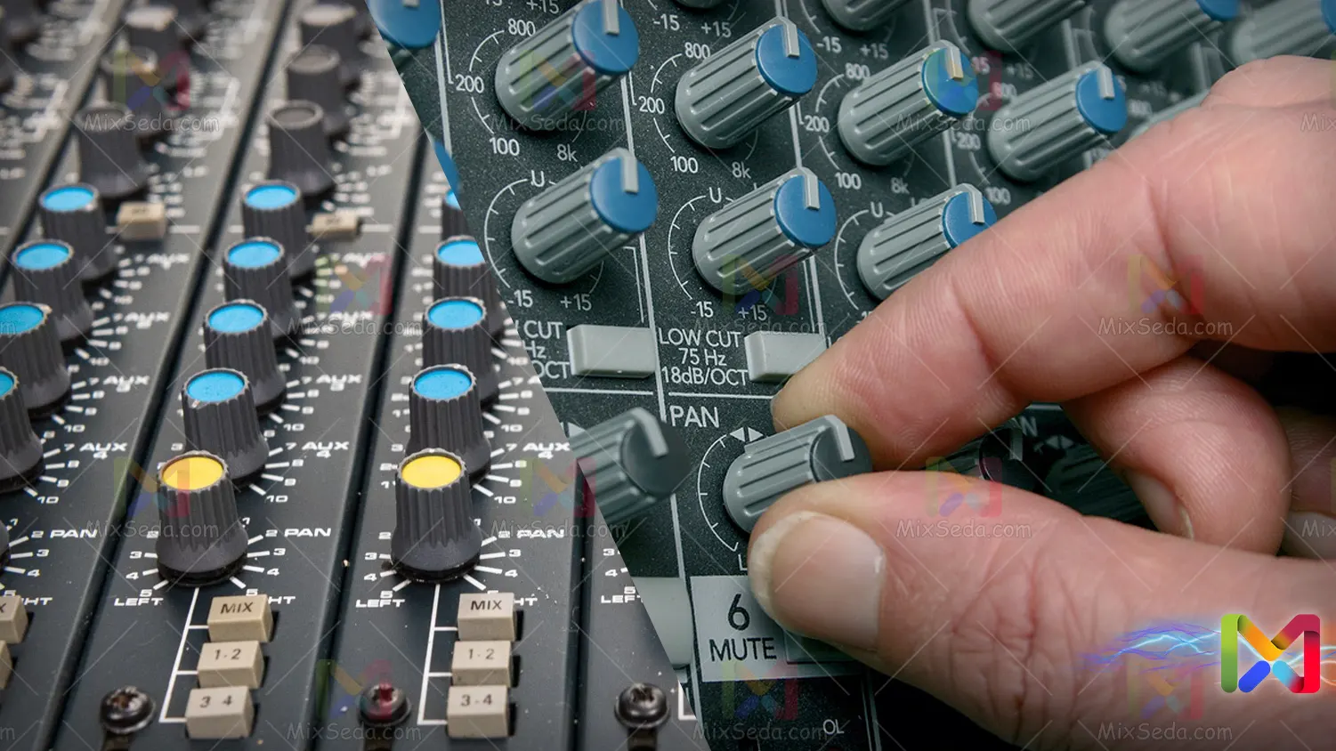 معمولا در میکسر ها در کنار این ولم دو حرف “R” و “L” نوشته میشود. که نشان دهده جهت کانال های صدا است. اگر چه این ولوم امکان خیلی سادهای را در اختیار صدابردار قرار میدهد.