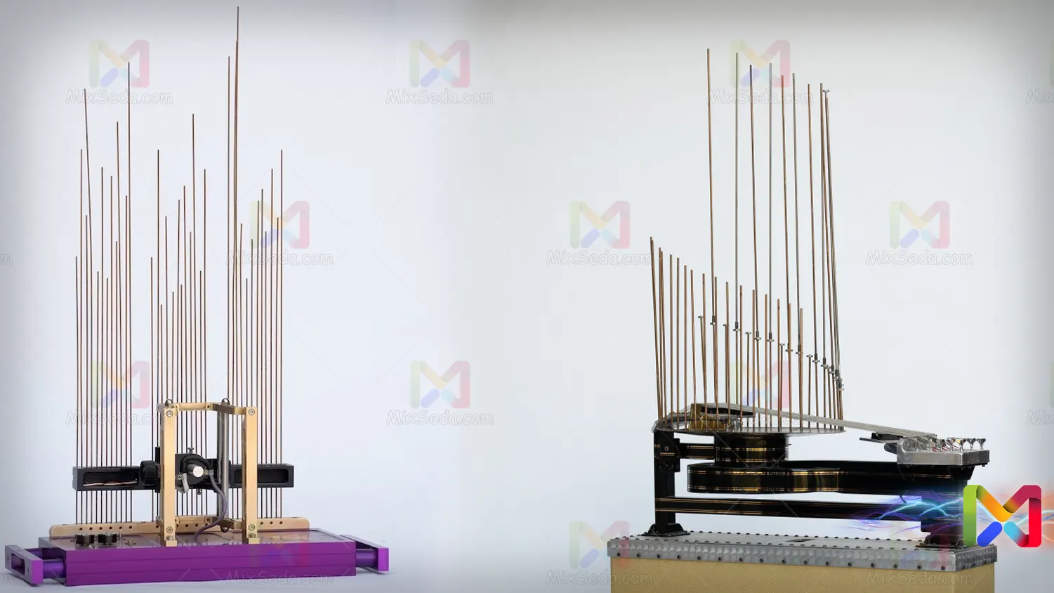 Bertoia – Inconel rods with aluminium resonators on a turbine blade. Inspired by Harry Bertoia, both the rods and plates are tuned to 14 tone scales