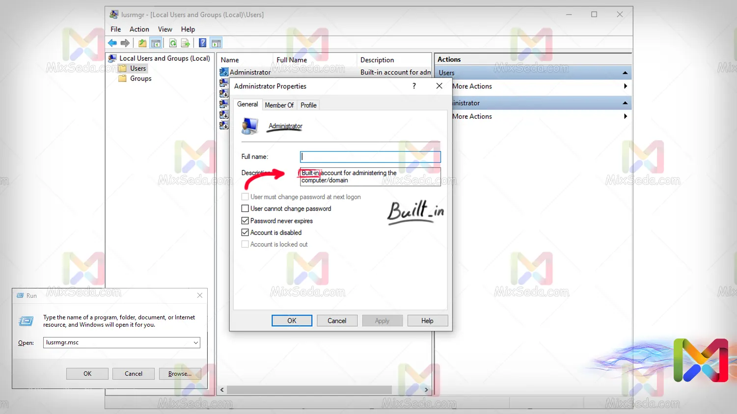 We have a number of users and groups integrated into Microsoft products. Integrated means that when you install Windows, Windows automatically creates these users. For example, in Windows, if you pay attention to the Description section or the instructions of the administrator user, Built-In is written.