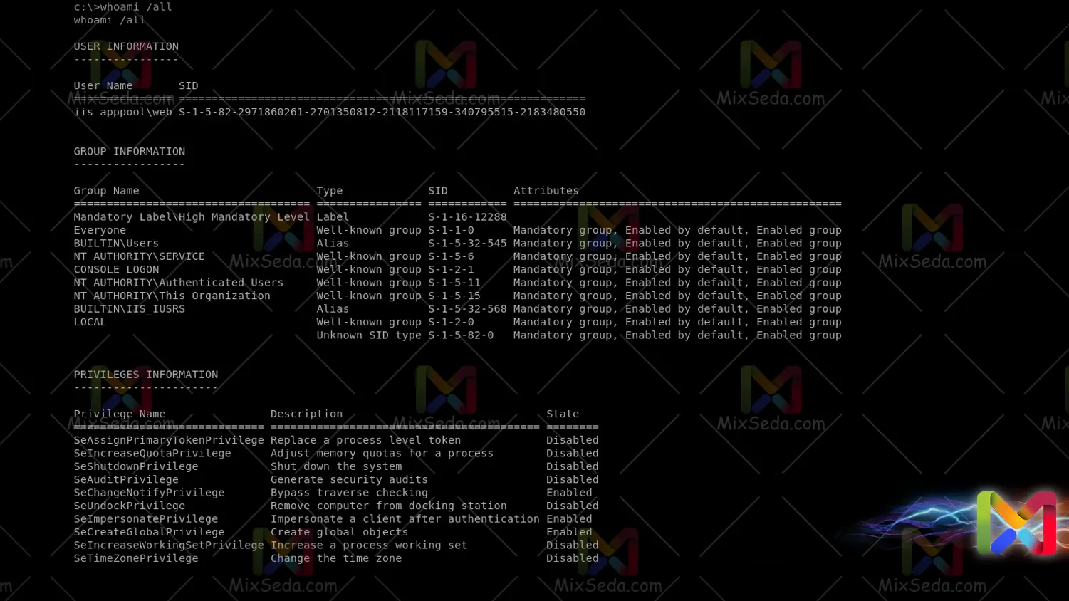 When I have access of any kind on a computer, an access level has finally become personal to me and this access level in the Microsoft Windows world is defined for me using a SID. You can view the user's SID by using the whoami / all command in the command prompt.